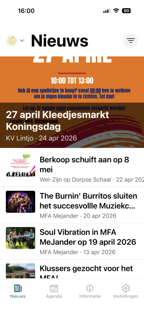 Oldeberkoop heeft een eigen dorpsapp! Een plek waar nieuws, activiteiten en initiatieven van verenigingen en organisaties samenkomen in één overzicht. Zo blijft iedereen eenvoudig op de hoogte van wat er speelt in ons dorp.